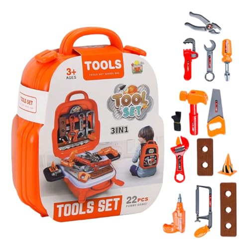 SGM 3 in 1 Tools Carry Backpack Tools Kit Role Play Yellow Tool Set for Kids Pretend Play Kids Toy Tool Set backpack for Toddler Boys Girls Birthday For 3-8 Year Old 008-992A
