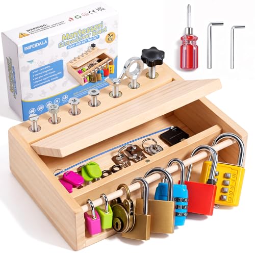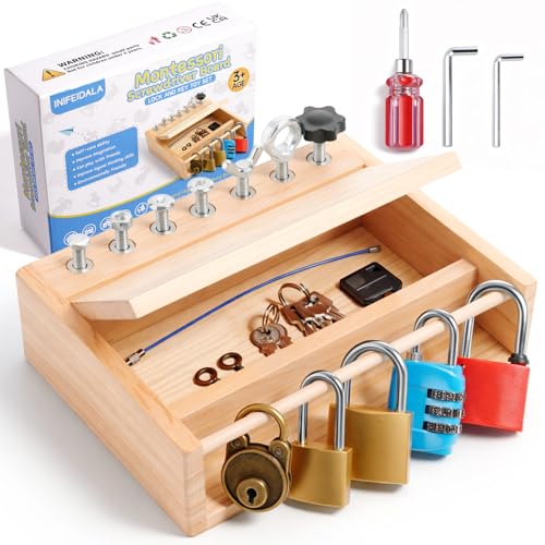 INIFEIDALA Montessori Toys for 3 4 5 Year Old,Montessori Screwdriver Board Set-Lock and Key Toy,Kids Tool Set,Preschool Learning Sensory - Fine Motor Skills - STEM Toys
