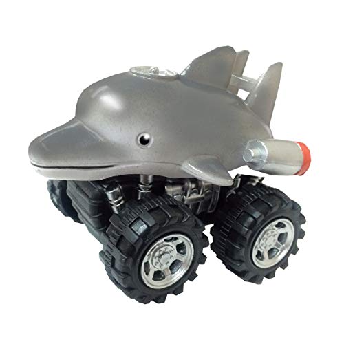 Wild Zoomies from Deluxebase. Friction powered toy monster trucks with cool animal riders, great red panda toys for boys and girls (Dolphin)