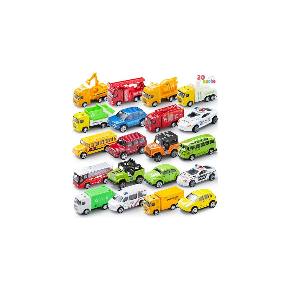 20 Piece Pull Back Die Cast Metal Toy Car Model Vehicle Set for Toddlers Toy Cars for 2 year olds Girls and Boys Kids Play vehicles Car Set
