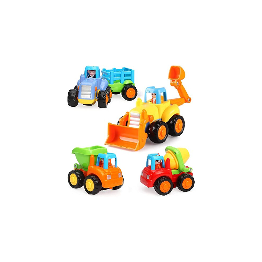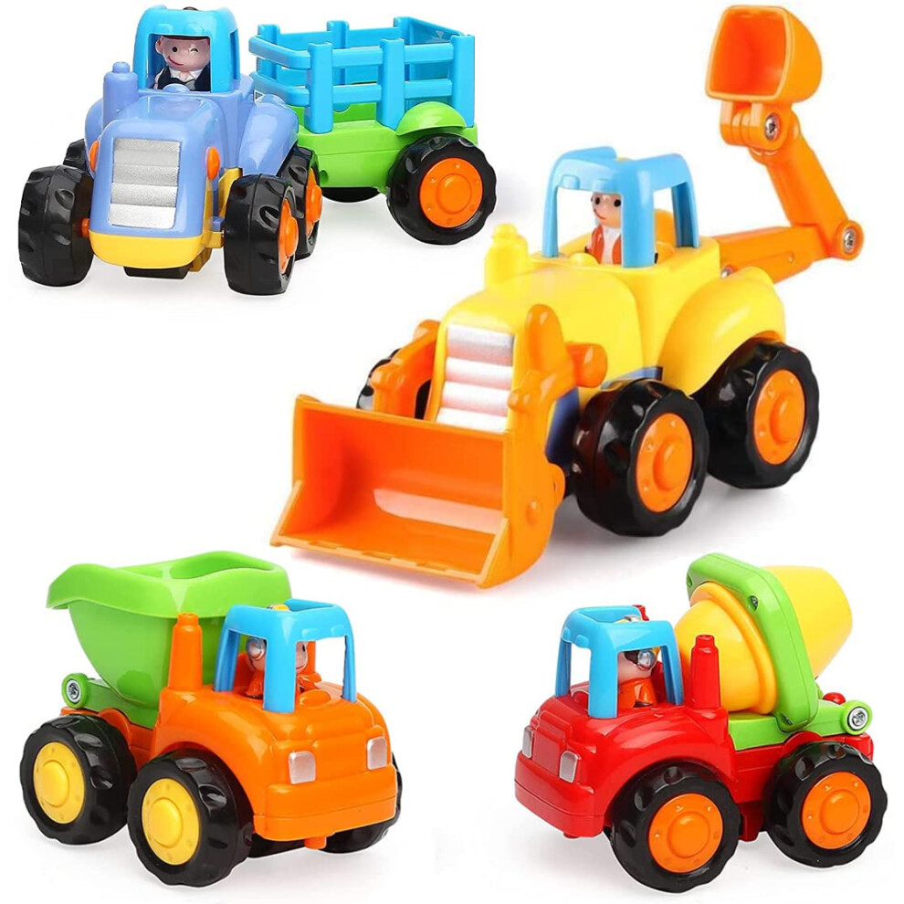 HOLA Toys for 1 2 Year Old Boy Gifts, 4 Pack Friction Power Kids Digger Trucks Toy Cars for 1+ Year Olds, Early Education Construction Vehicles