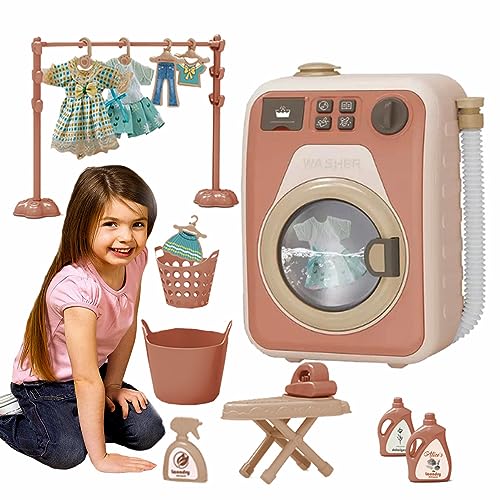 BSTCAR Mini Washing Machine Toy Children, Electronic Toy, Household Toy, Washing Machines with Various Laundry Accessories and Functions, Improve Skills