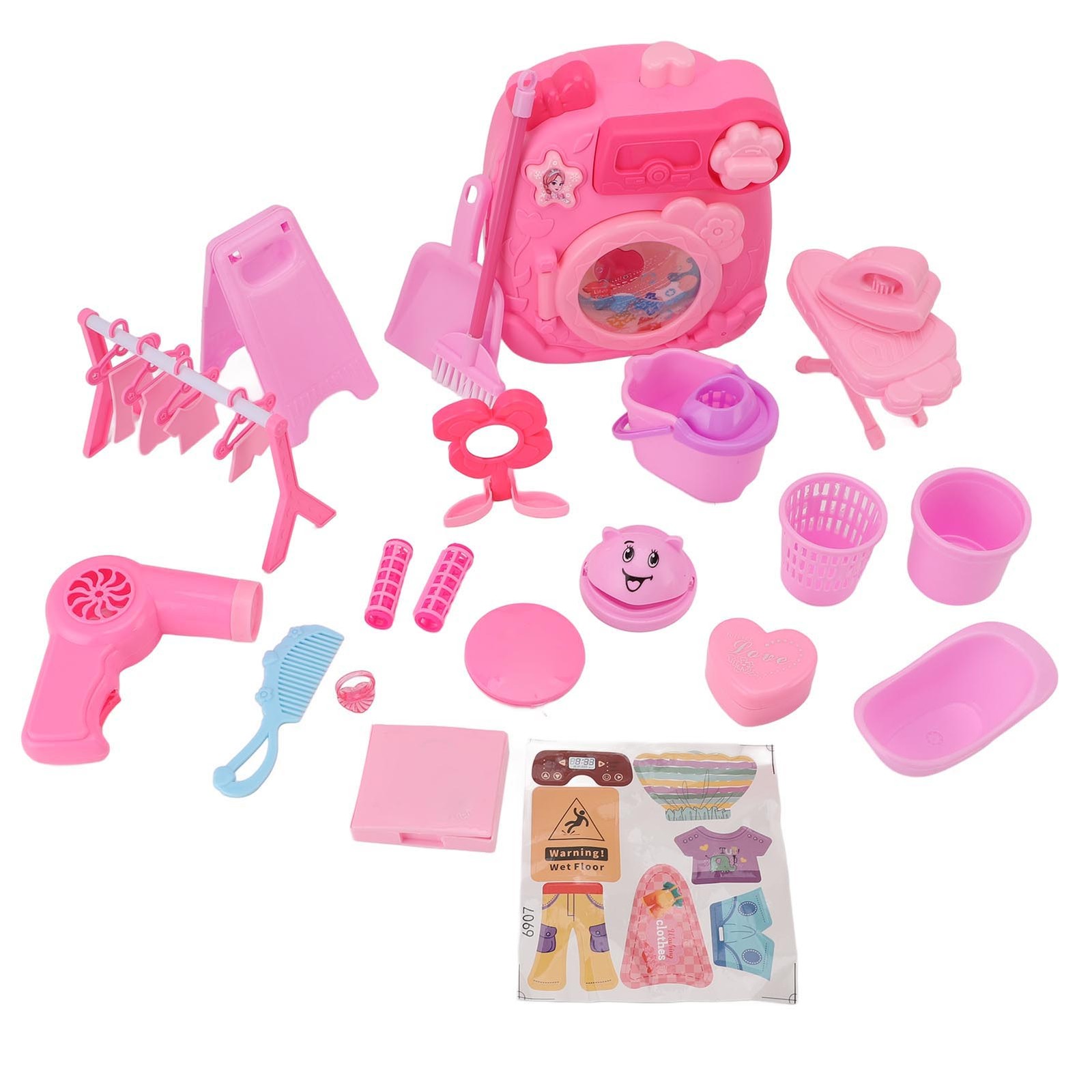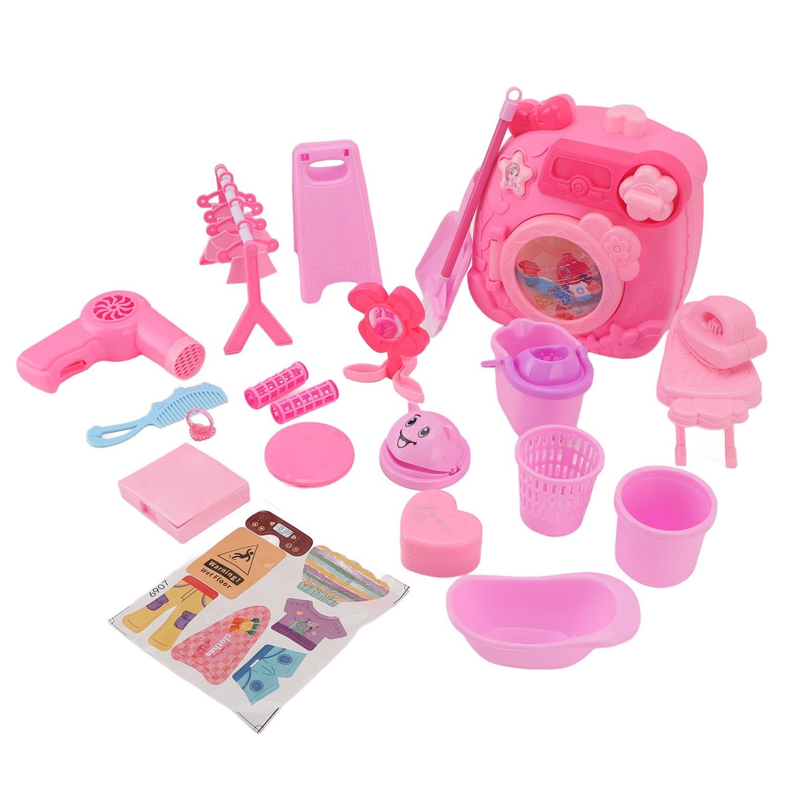 COO11 18pcs Kids Washing Machine Toy and Accessories with Light and Sound, Household Appliance, Roller Washing Machine, Laundry Room, Educational Fun Learning Toy, for Girls, Suitable for 3+
