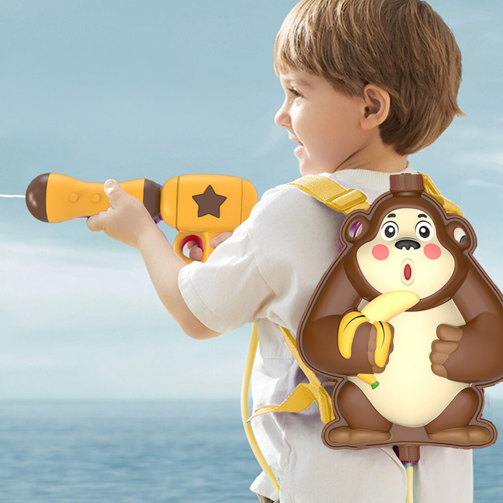(Brown) Children's Backpack Water Pistol Toy Pull Out Summer Songkran Festival Water Pistol Toy Water Pistol Orangutan Backpack Water Pistol