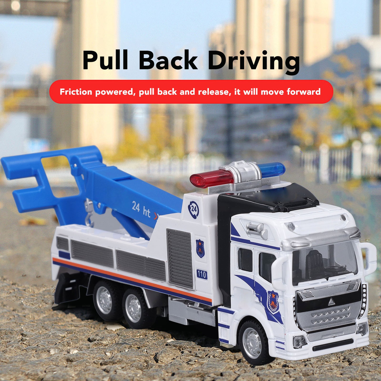 Toy Tow Truck Metal Truck With Crane Hook Friction Powered Pull Back Wrecker Tow