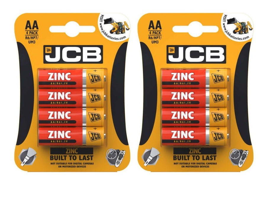 JCB AA Zinc Batteries Pack of 8 Power for Toys and Small Electronics
