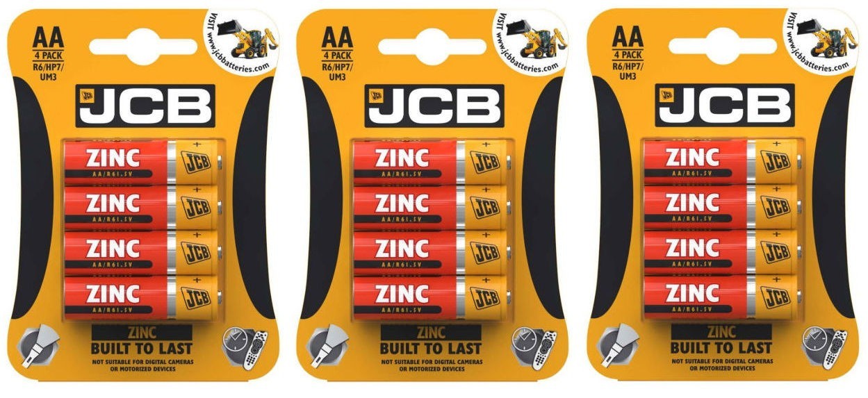 JCB AA Zinc Batteries Pack of 12 Power for Toys and Small Electronics