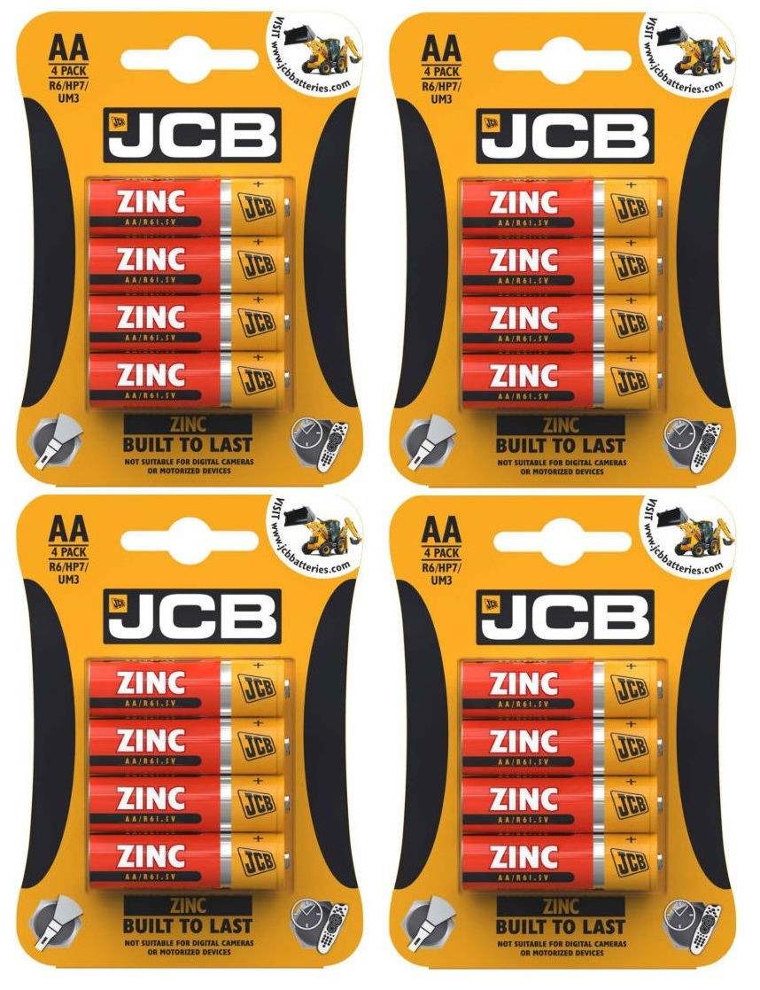 JCB AA Zinc Batteries Pack of 16 Power for Toys and Small Electronics