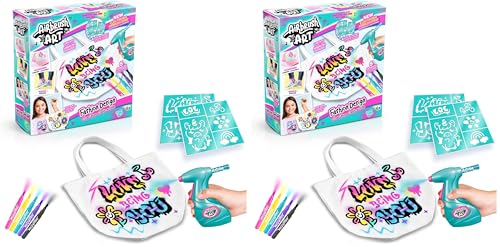 Airbrush Fashion Design Kit for Kids – Customise Your Own Bag & Clothes | Battery-Powered Airbrush, Stencils & Washable Fabric Markers | Reusable DIY Craft Kit for Girls Ages 6+ (Pack of 2)