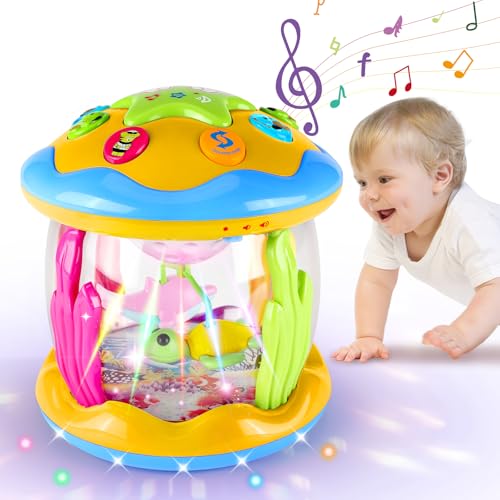 Baby Toys 6 to 12 Months - Ocean Rotating Baby Musical Toys 9 12 18 Months, Light Up Sensory Toys for 1 2 Year Old Girl and Boys Crawling Learning Tummy Time Toys, 1st Birthday Gift