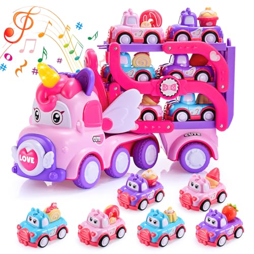 seveclotree 7 in 1 Carrier Truck Cars for Toddlers 1-3,Unicorn Toy Car with Lights & Music,Toddler Girl Toys Age 2-4,Toys for 1 2 3 Year Old Girl Gifts Birthday for Baby Girls