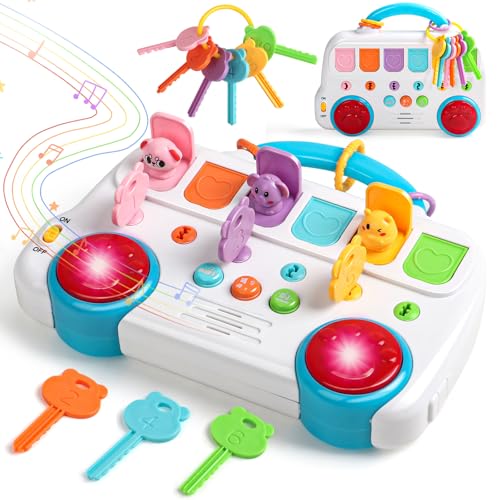 Baby Toys for 1 Year Old Girls Boys - 6 IN 1 Montessori Toys for 1 Year Old Girl Gifts Toddler Musical Toys Busy Board With Animals Keys Educational Toy Birthday Gifts for 1 Year Old Girl Boy