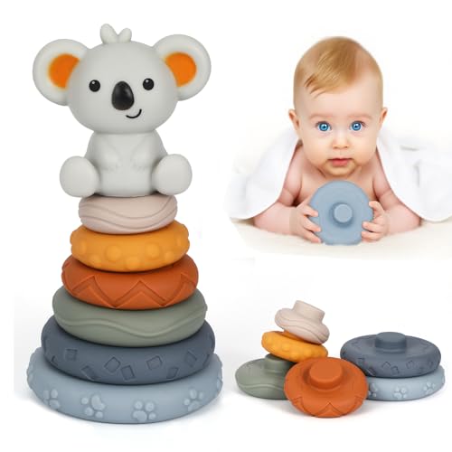 Stacking Rings for Babies, Soft Teething Stacking Toy with 7PCS Textured Rings, Educational Developmental Toys for Newborns Infants 0-6 12 Months