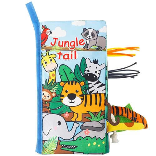 DEARBAG Baby Book Baby Toys Jungle Tails Sensory Books for Babies Touch and Feel Soft Books, Crinkle Paper Baby Essentials for Newborn Infants Toys, Newborn Gifts for 0 3 6 12 months Boys Girls