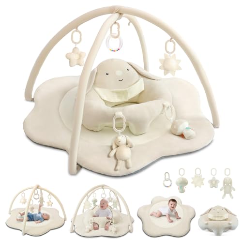 Suihuooo 3-in-1 Baby Play Mat, Baby Seats for Infants to Sitting Up, Baby Mats for Floor Play with 5 Detachable Toys, Baby Gym for Babies 0-6 6-12 Months (Beige)