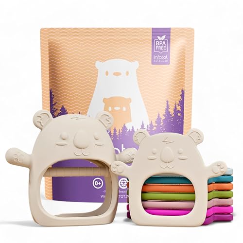 Infatot® Teething Toys for Baby Gifts – 2-Pack Koda Koala Teether Mitten Glove, Soothing Hand Teethers for Infants, Baby Toys 0-6 Months and Up, Newborn Essentials for Teething Relief, Cream