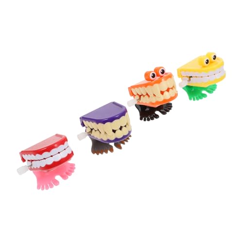 Mienocol 4 PCS Chattering Teeth Wind Up Toys for Kids,Funny Jumping Teeth Toy Chomping Tooth Chattering Teeth With Eyes Walking Teeth Toys for Halloween Party Favors Trick and Treat Goody Bag Filler