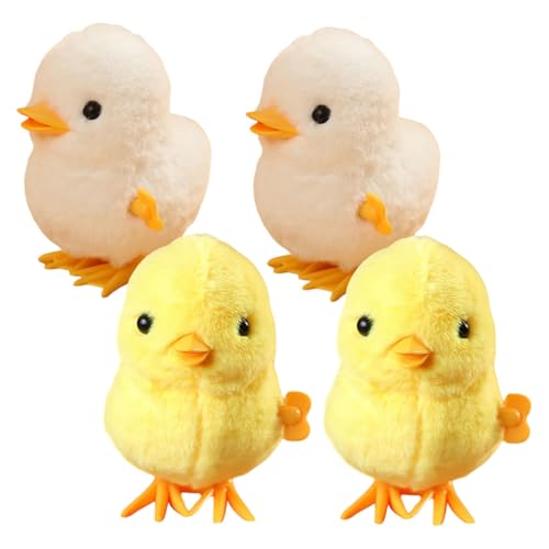 JOINPAYA 4pcs Plush Wind up Chick Toys for Kids Clockwork Jumping Baby Chicken Toys Bulk Set Spring Walking Party Favors and Bag Fillers for Toddlers