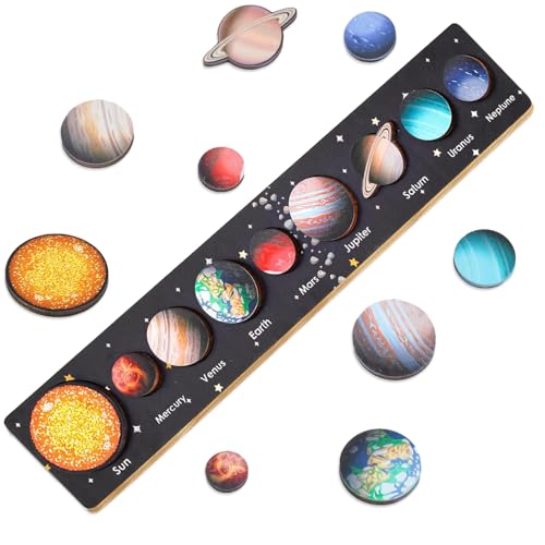 Planets for Kids Solar System,Puzzle Wooden Science Resources Solar System for Kids Planet Toys for Toddlers Miniatures,for Birthday Children'S Day Gift 3 4 5 6 Year Old Boys Girls Learning,Durable