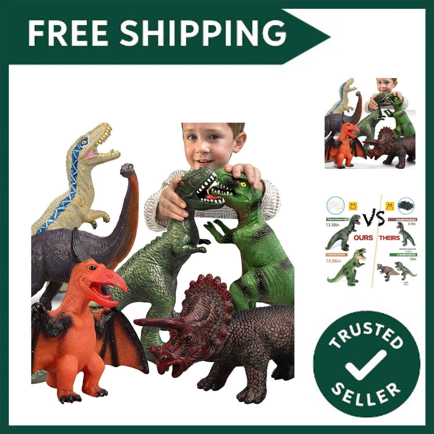 6 Piece Jumbo Dinosaur Toys for Kids and Toddlers 3-5, Large Soft Figures for...