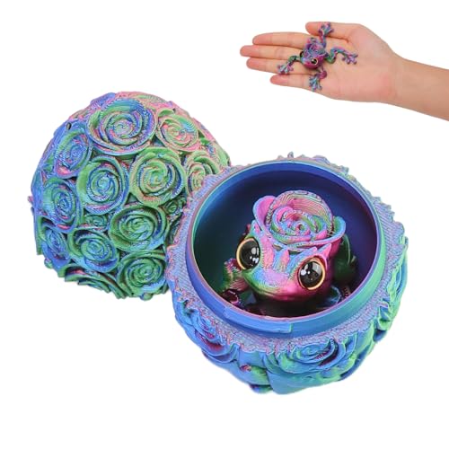 AOONTYEN 3D Printed Mini Frog, Mystery Frog with Eggs,3D Printed Rose Egg with Articulated Frog Inside, Adults Kids Fidget Toys Christmas, Multi Color for Home Office Decor (Blue)