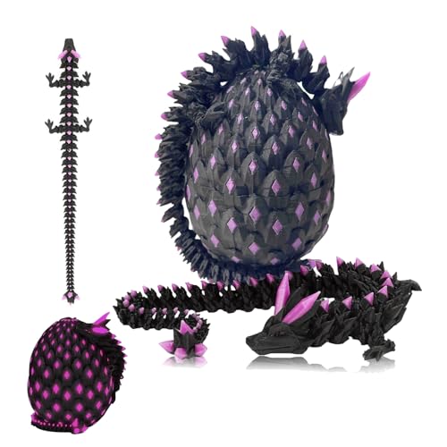 3D Printed Dragon in Egg, Dragon Eggs with Dragon Inside, Full Articulated Dragon Crystal Dragon Fidget Toys for Kids, Adults Fidget Toys for Autism ADHD, Home Office Desk Toys Decor (Purple)