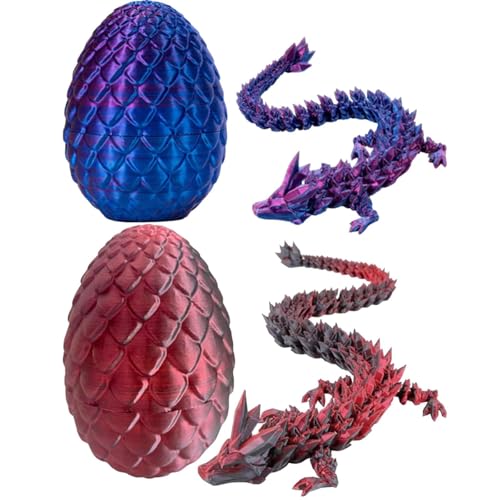 3D Printed Dragon in Egg, Full Articulated Dragon Eggs with Dragons Inside, Crystal Dragons Fidget Toys, Flexible Joints Home Executive Desk Toys, Easter Eggs Hunt for Autism/ADHD (Laser Red)