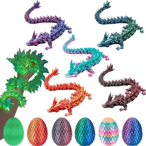 AYNKH 6PCS 3D Printed Dragon Egg Set with Articulated Mini Creature Inside, Fidget Stress Relief Toys, Collectible Eggs for Kids Teens, Easter Basket Stuffers, Home Office & Gift Ideas (Multicolour)