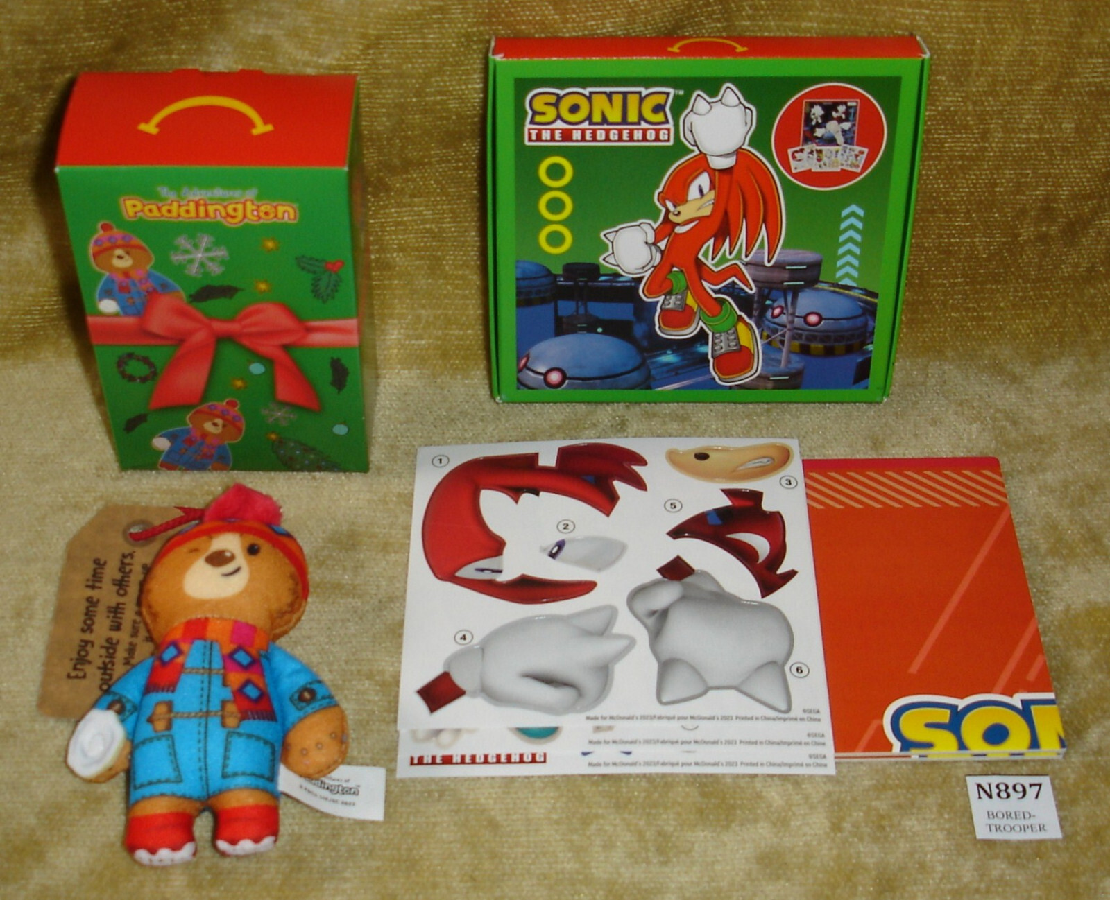 2x BRAND NEW MCDONALDS 2023 TOYS BOBBLE HAT PADDINGTON BEAR & SONIC KNUCKLES HTF