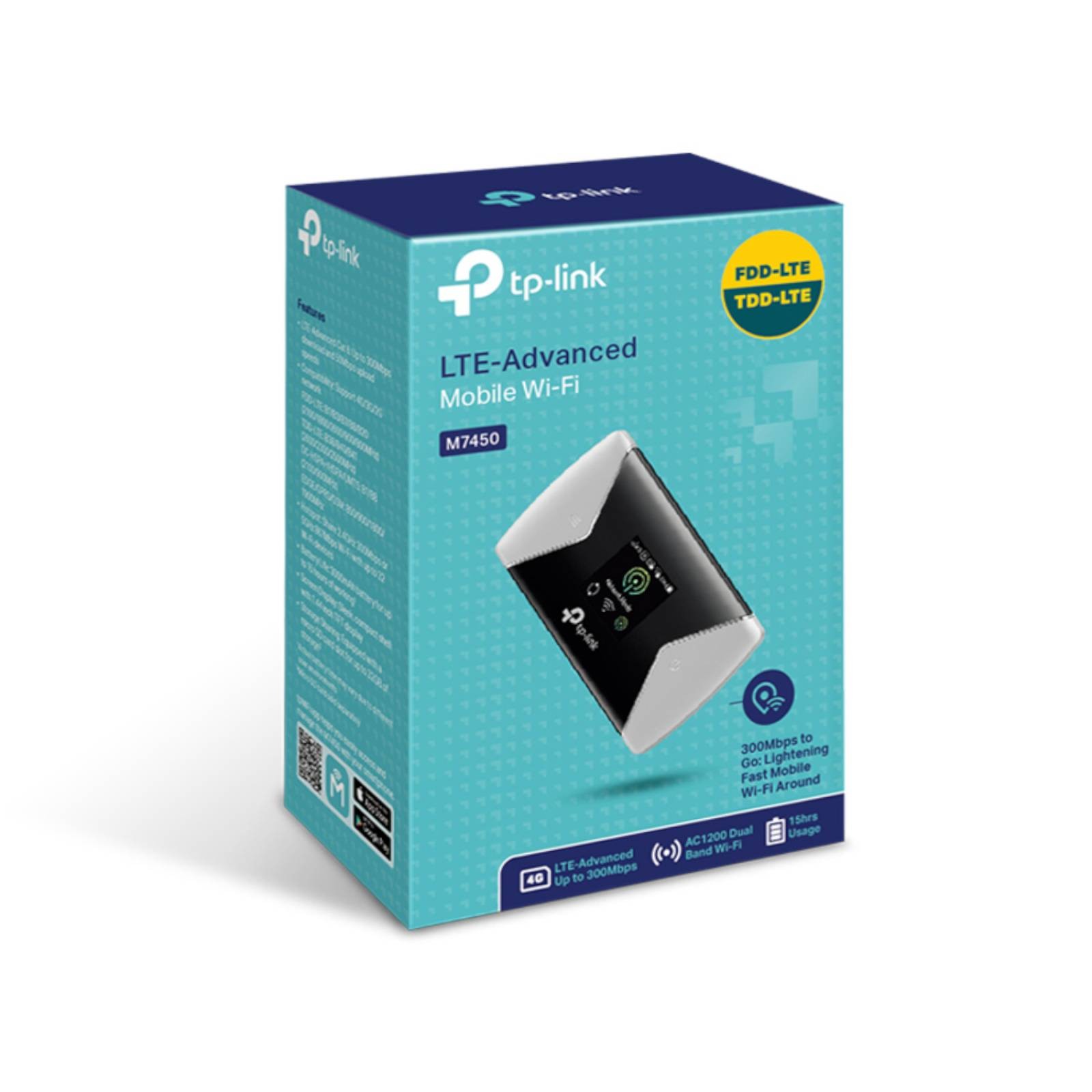 TP-Link M7750 WiFi Soap Bar with SIM 4G+, Cat12 AC1200 Dual-Band, DL 600Mbps/UL 150Mbps, 3280mAh Battery, Type-C Port, Micro SD Card, Touchscreen, Supports up to 32 Devices, tpMiFi App