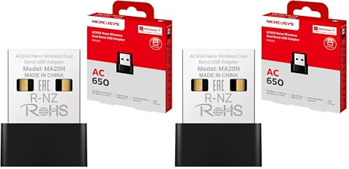 MERCUSYS MA20N AC650 USB WiFi Dongle, Dual Band WiFi Adapter for PC/Desktop/Laptop, Nano Mini Wireless Adapter for PC TP-Link, Supports Windows 10-11, WPA3 Safety Protection (Pack of 2)