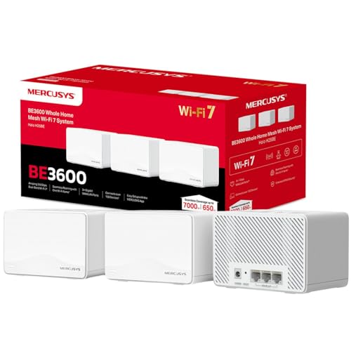 MERCUSYS Halo H25BE(3-pack) BE3600Mbps Whole Home Mesh WiFi 7 System, 3x Full Gigabit WAN/LAN Ports, 4K-QAM, MLO, Multi-RUs, Dual-Band WiFi Extender Booster, Connect Over 150 Devices, TP-Link Mesh