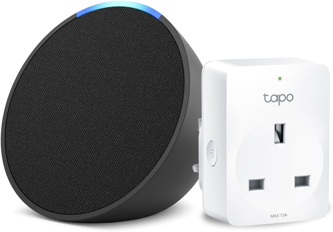 Echo Pop | Charcoal + Tp-Link Tapo P110M Smart Plug with Energy Monitoring, Work