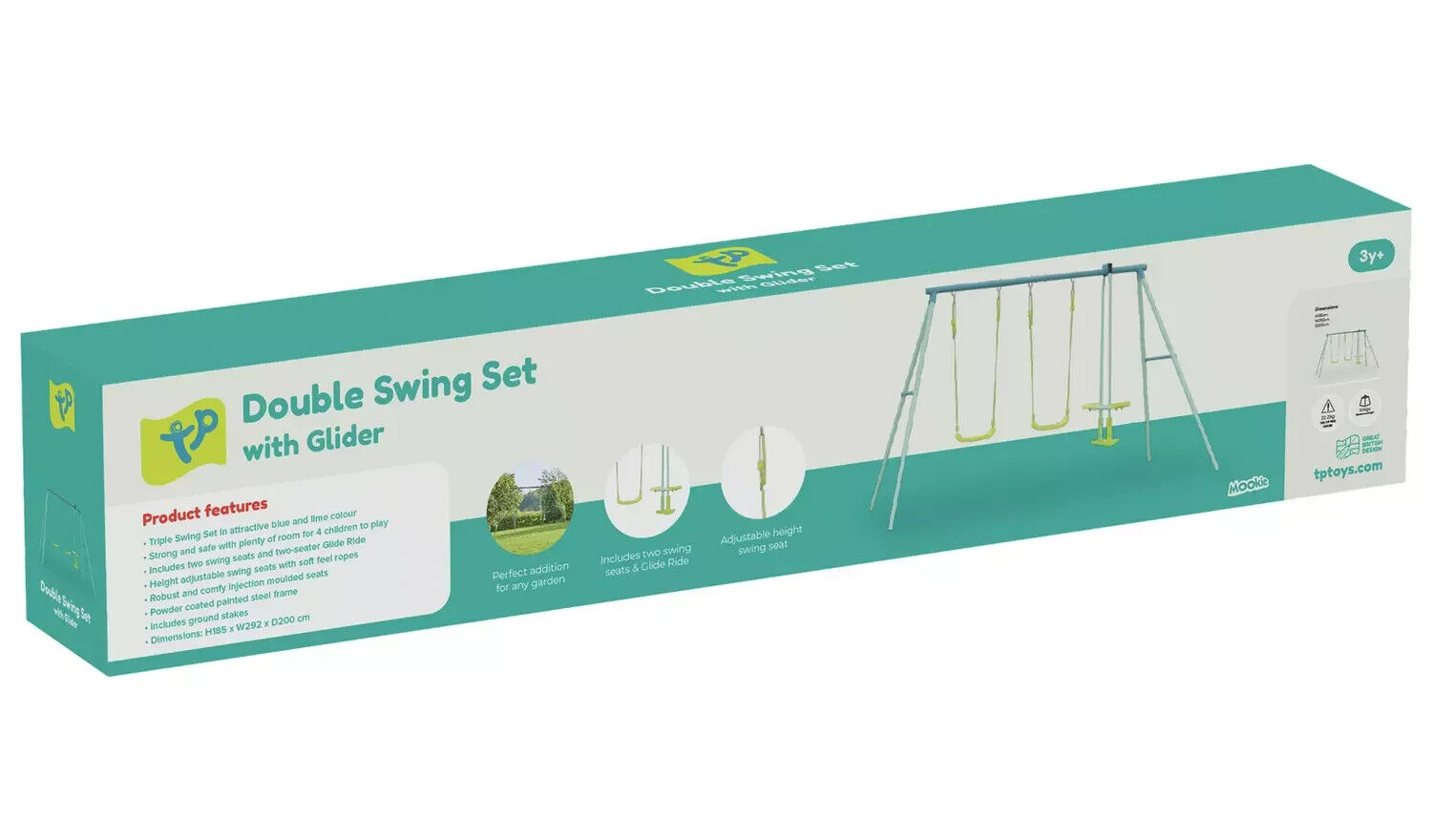 TP Toys Double Swing Set with Glider | Two Swing Seats & Glide Ride | Steel