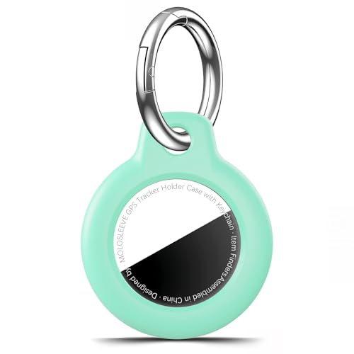 MOLOSLEEVE for Airtag Holder Case with Keychain, Shockproof GPS Cover Anti-Scratch Key Chain for Air Tags, for Airtags Accessories for GPS Item Tracker Cases for Bags, Luggages, Mint Green