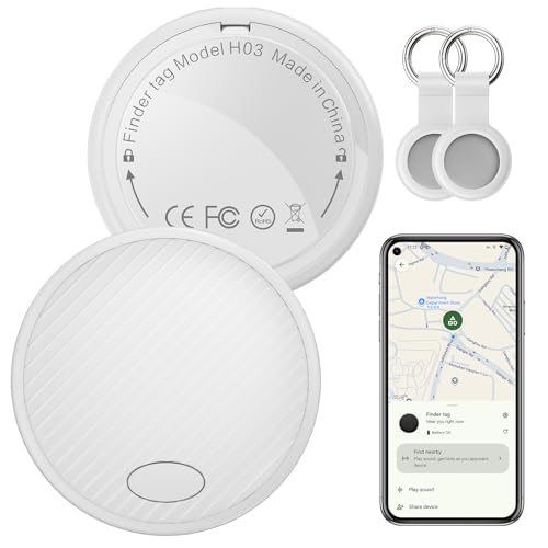 Android Tracker Tag 2 Pack, Smart Tag Bluetooth Key Finder Work with Google Find My (Android Only), Item Locator for Luggage, Bags, Pets, Wallet, Replaceable Battery (White)