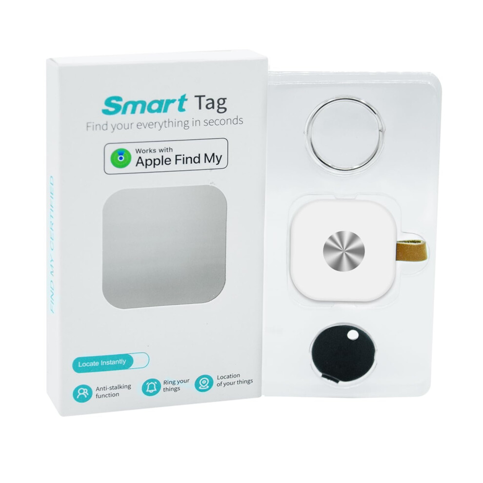 Smart Key Finder Compatible with Apple Find My, Bluetooth Item Tracker for Keys Wallet Bike, IP67 Waterproof, Replaceable Battery, White