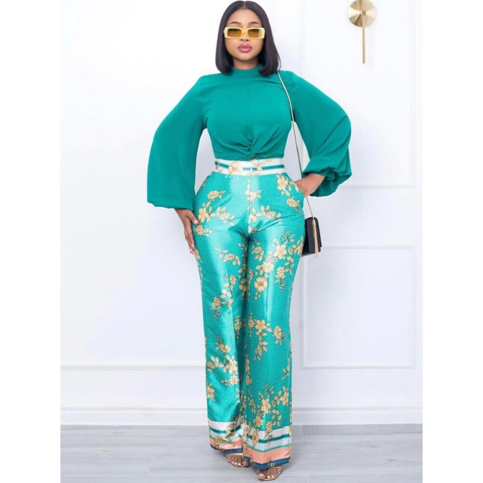 2 Pieces Women's Sets Summer Autumn Flower Print Blouse Shirt Suit Tops And Pants Suits Dashiki African Set Tracksuit Outfit