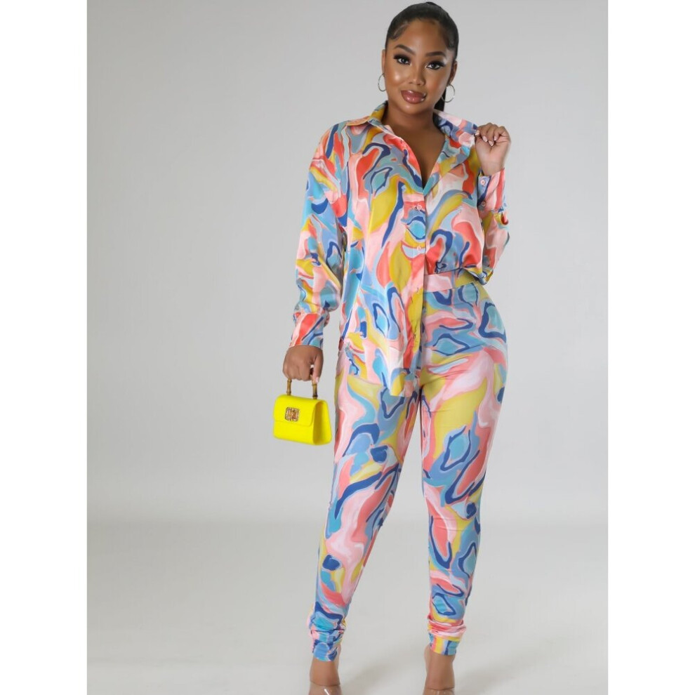 2 Pieces Women's Sets Summer Autumn Flower Print Blouse Shirt Women Suit Tops And Pants Set Two Piece Set Tracksuit
