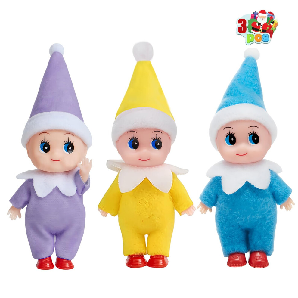 3pcs Christmas Elf Baby Mini Dolls,Christmas Baby Elves Twins Cute Little Elfs,Naughty Tiny Baby Elf Doll Novelty Toys Christmas Tradition Small Dolls for Girls Boys Kids Gift Xmas Stocking Stuffers
