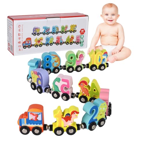 Dinosaur Wooden Train Set, 11 Pack Magnetic Number Train Toys for 2-5 Year Olds, Educational Learning Toys for Kids