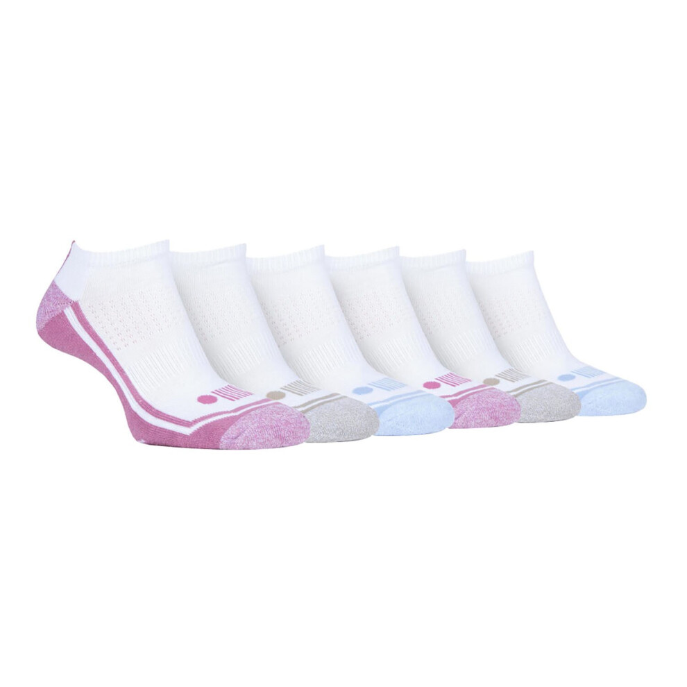 (White / Pink) JEEP - 6 Pairs Ladies Performance Poly Low Ankle Length Trainer Socks