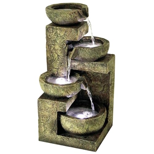 GEEZY Garden Water Feature – 4 Tier Fountain with LED Lights – Mains Powered, Self-Contained, Indoor & Outdoor – Easy Setup, Cascading & Tranquil – Great for Garden, Home, Patio & Balcony Decor
