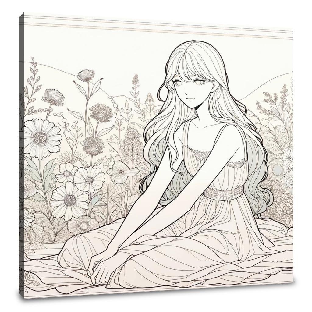 Geisha Performing in Tranquil Garden Painting Graceful Traditional Dance Floral Japan Kimono Spring Bloom Flower Landscape Art Print Framed Poster Wal