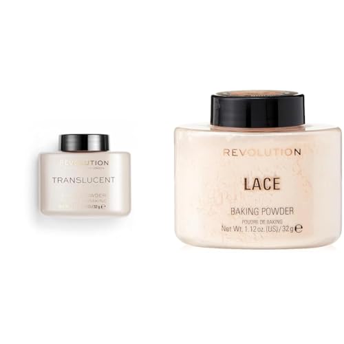 Revolution Beauty London, Loose Baking Powder, Prolongs Makeup Wear, Setting Translucent, For All Skin tones, 32g & Loose Baking Powder, Prolongs Makeup Wear, Setting Lace, For Light Skin tones, 32g