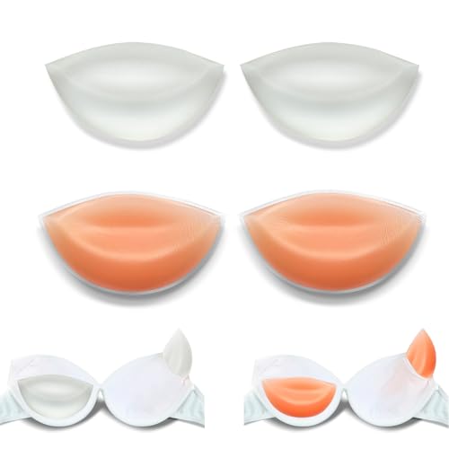 Xumann 2 Pairs Chicken Fillet Bra Inserts, Silicone Breast Enhancers Fit Most Cup Sizes for Bikini Swimsuit Daily (Transparent+Skin Colour)