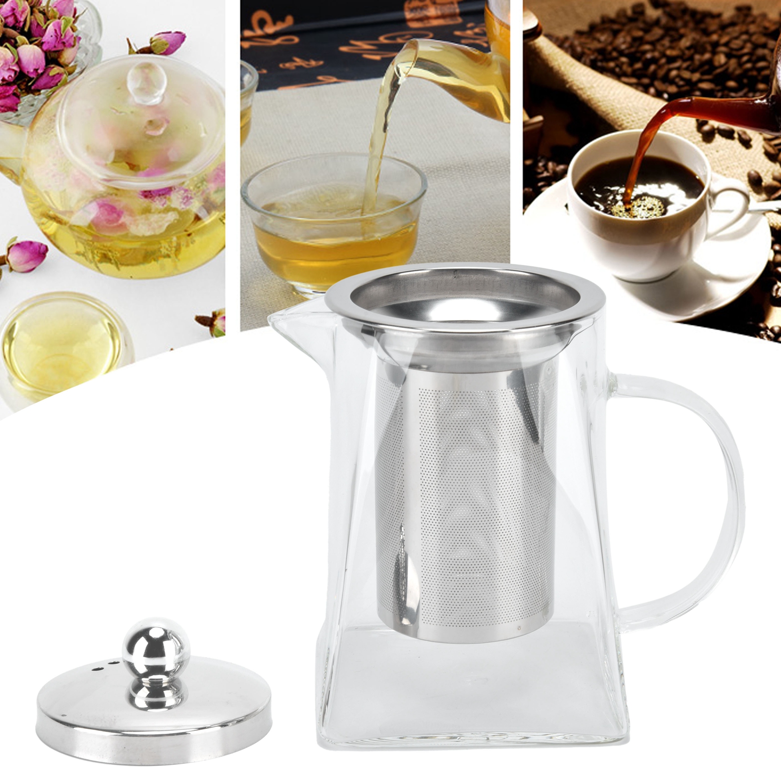 Transparent Glass Teapot With Removable 304 Stainless Steel Filter Tea Kettle Fo