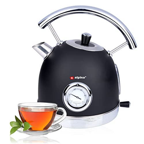 Alpina Kettle - Retro - 1.8 L - Integrated Thermostat - Boil Dry Protection - Transparent Water Level - Tea Maker - Black - 1850-2200 W