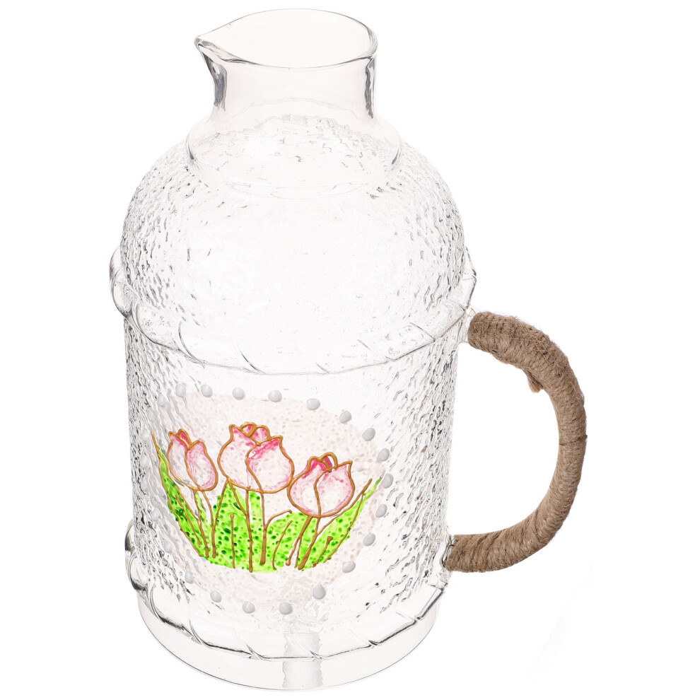 Lidded Glass Pitcher Transparent Water Kettle Tulip Design