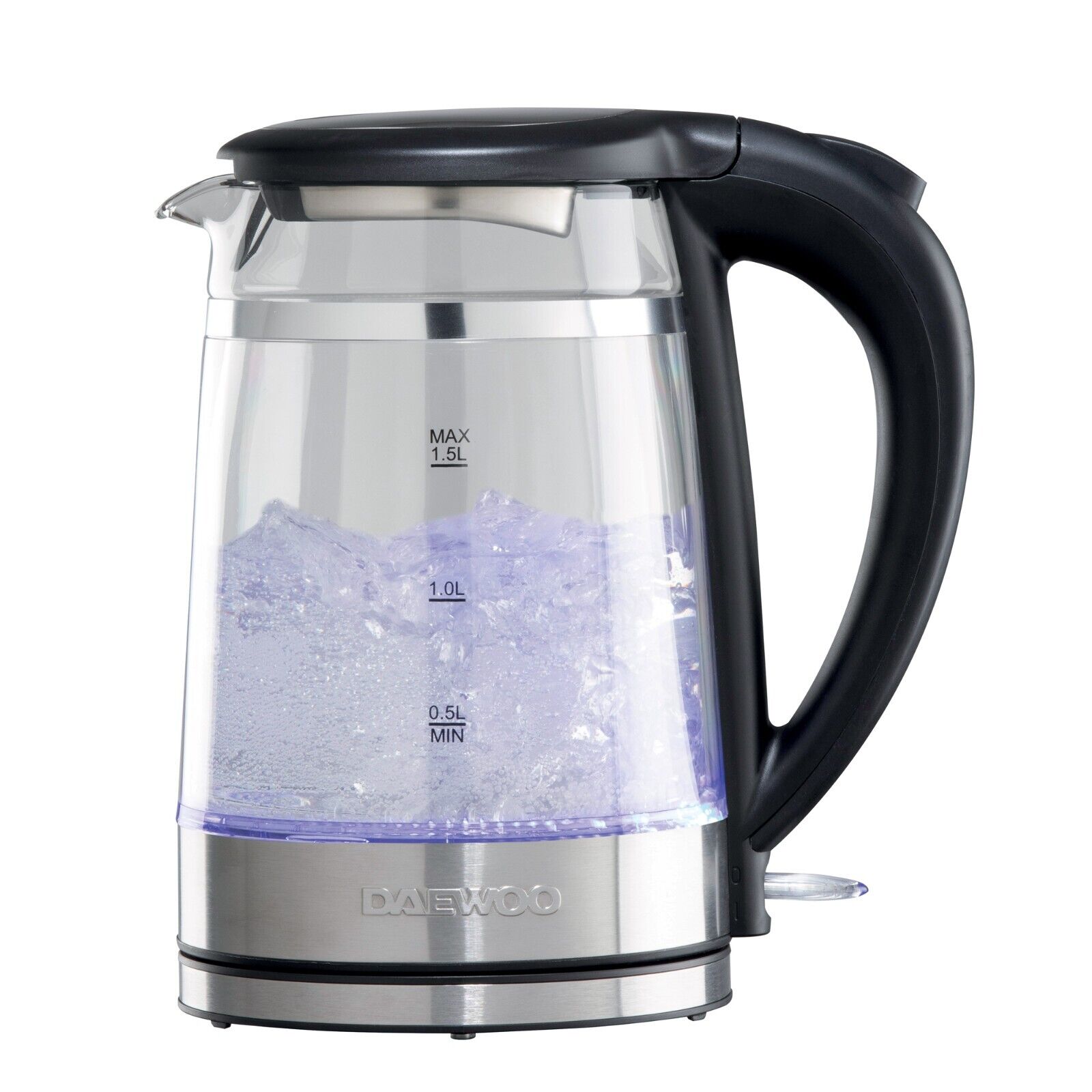 Daewoo Cool Touch Kettle Transparent 3KW Fast Boil 1.5L Eco Energy Efficient LED
